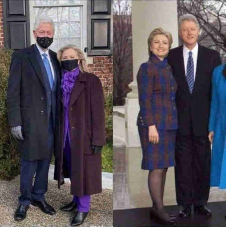 Auch Hillary lässt sich offensichtlich nicht mehr im Original blicken, was selbstverständlich kein Beweis dafür ist, dass sie bereits beseitigt und ersetzt wurde, aber durchaus so interpretiert werden kann. (Beachte den Grössenunterschied.)